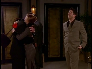 Rachel hugs Mark in front of a jealous Ross in The One Where Chandler Can't Remember Which Sister.