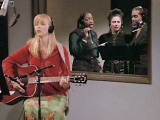 Other tunes include "The Grandma Song" (a song about grandparent death) and "The Cow in the Meadow goes Moo" (a song about beef production and packaging), both of which she sang to the children in the public library program. Her honest lyrics earned her the nickname "The Lady Who Sings About the Truth". She also sang a song called "Happy Birthday, Emma" in Season 10, on the occasion of the birthday of Rachel and Ross' daughter Emma.