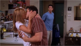 - While on the plane, Ross goes to talk to Joey about how he kissed Charlie. Before he says so, Joey says that he knows, causing Ross to awkwardly laugh. In the background, Jennifer Aniston can be seen laughing.
