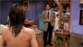 - The arrangement of Joey and Chandler's bathroom changes. In this episode the shower is opposite the door, but in other episodes, the sink is opposite the door. It is likely that this was to facilitate the filming of the scene where Monica walks in on Joey's dad showering.